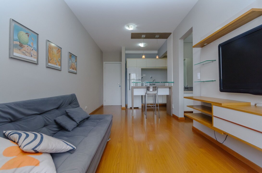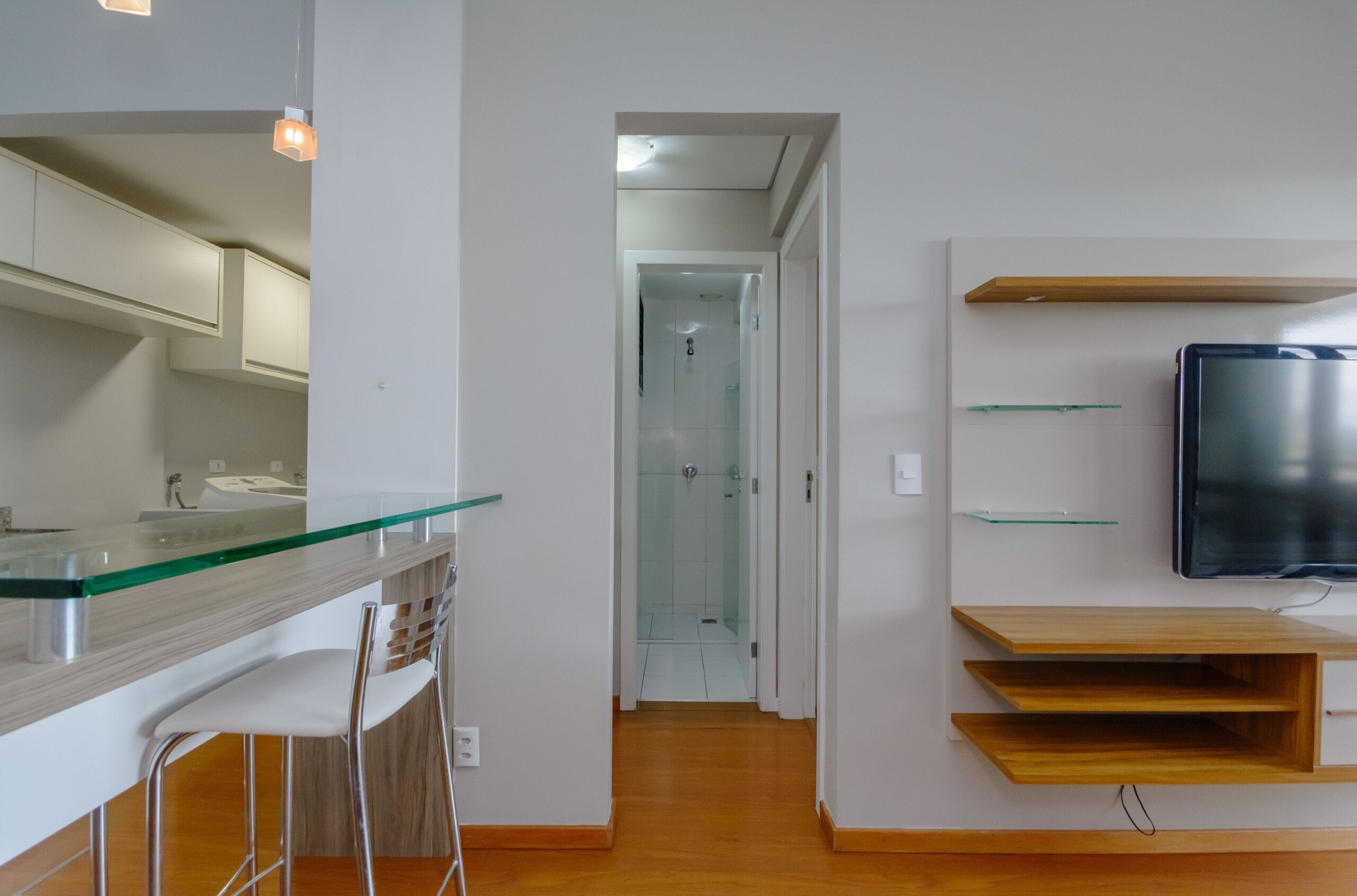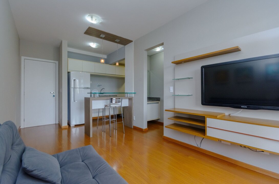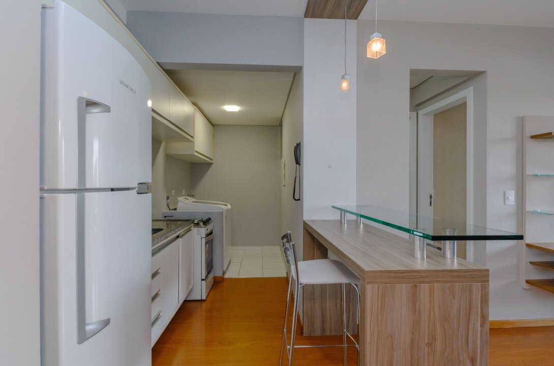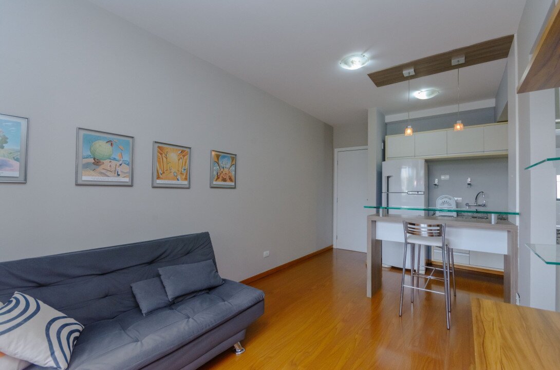 Apartamento mobiliado, em excelente localização. 01 dormitóro, sala com sacada. Cozinha com fogão e geladeira. Maquina de lavar roupas. Quint andar, de frente, com muita luminosidade e ventilação. 01 vaga de garagem live. Predio com academia, piscina, lavanderia.